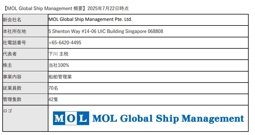 商船三井は、2025年7月22日から、「MOL Global Ship Management Pte. Ltd.」という新たな船舶管理会社を中心に、グループの船舶管理機能を一本化すると発表しました。この統合は、グループ全体の業務の最適化と競争力向上を狙いとしています。