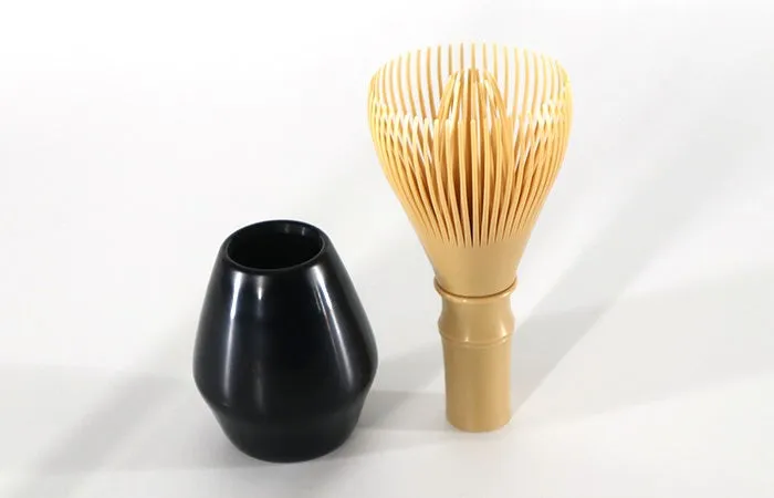 この樹脂製茶筅の特徴は、しなやかでコシのある穂先です。美しい泡を立てることができ、抹茶を点てる際の仕上がりは格別です。茶筅には色々な種類があり、穂の本数や持ち手の太さ、穂先の形状が異なりますが、こちらの茶筅は快適な使用感を追求して作られています。一般的に濃茶を点てる際には穂数の少ない茶筅を、薄茶には穂数の多い茶筅を使うことが多いですが、この茶筅はお好みに合わせて選ぶことができるデザインです。