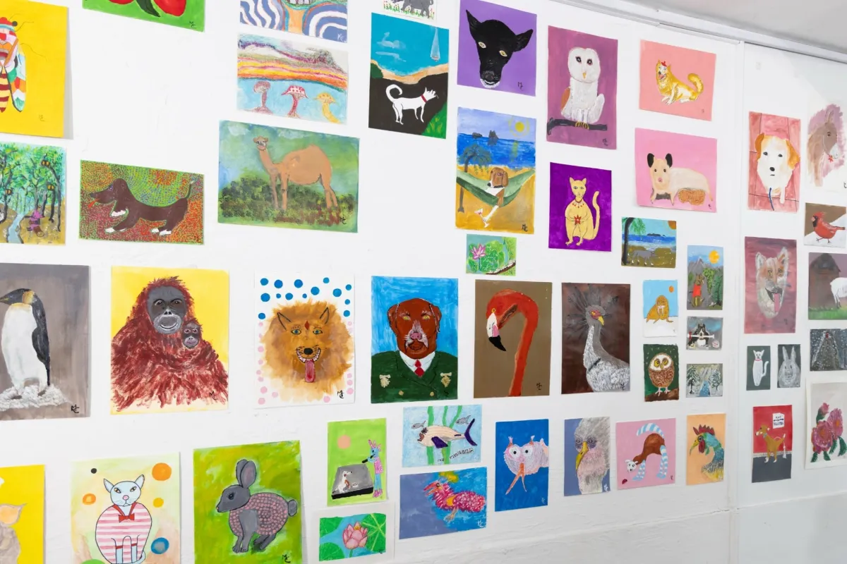 2025年11月9日、代々木のY2 STUDIOで、ミッキー・カーチスの個展が開かれました。初台駅から徒歩5分の場所にある静かな住宅街の一室には、色鮮やかで心温まる空間が広がり、多くの来場者を迎えています。壁一面を飾る鮮やかな色や線は、まるで生きているかのように躍動し、観客の会話と共鳴し合っています。特に好物のコーラを持ち、来場者と笑顔を交わすミッキーの姿は、彼の豊かな人間性を感じさせます。