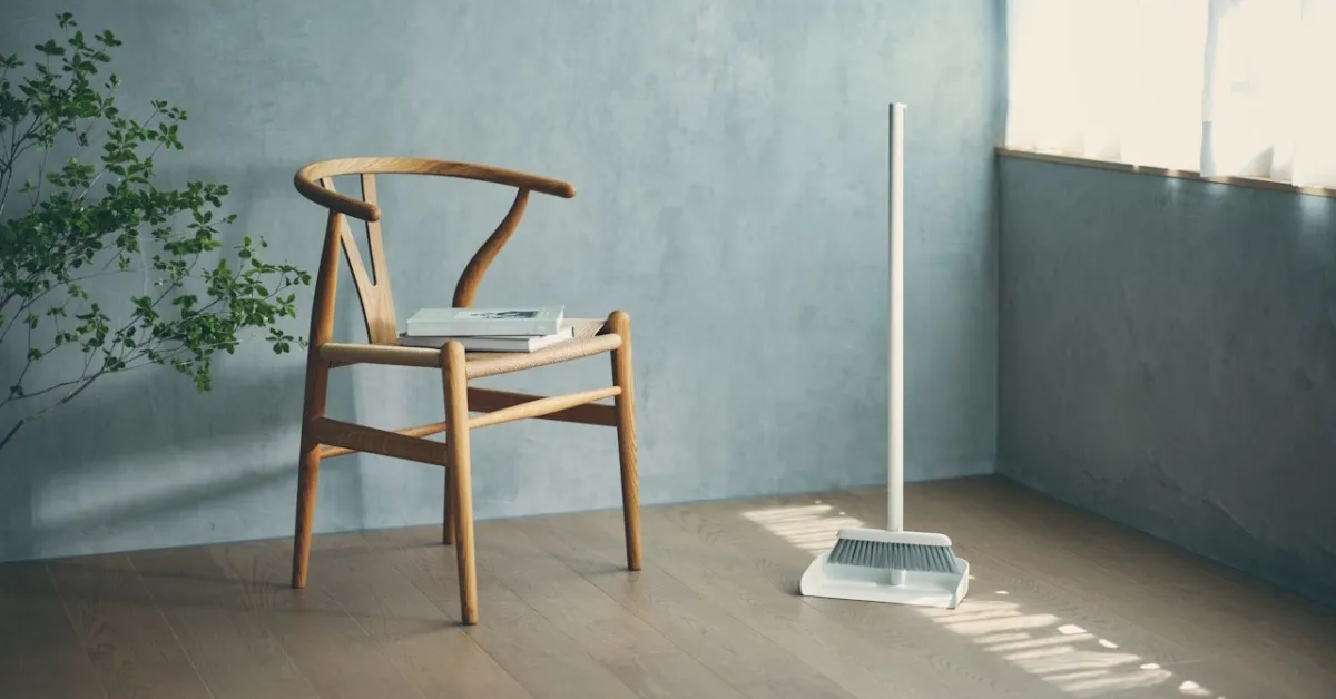 「スタンドほうきちりとり」は、収納時にはちりとりの柄の先端にほうきをフックするだけで、スッキリと自立するという特長があります。このデザインにより、道具を持っていても、使わないときにはどこに置くかに悩むこともありません。使いたいときにサッと手に取れ、戻すのも簡単。忙しい日常の中で、気軽に掃除を行える環境が整えられます。