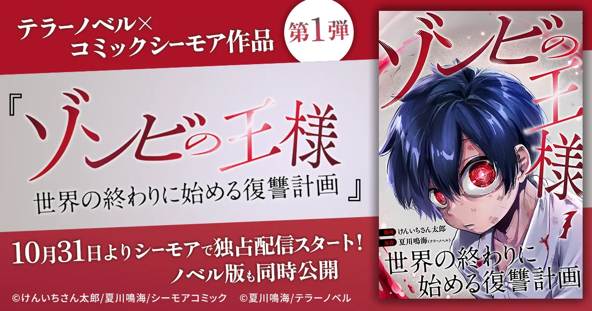 2025年10月31日、テラーノベル原作の新作『ゾンビの王様〜世界の終わりに始める復讐計画〜』が、コミックシーモアでの独占配信をスタートします。この作品は、コミカライズされた漫画版とノベル版が同時に公開され、話題を呼ぶこと間違いなしです。