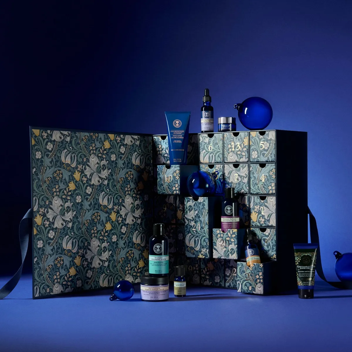 ニールズヤードのアドベントカレンダーは、ブランドの代表的なアイテムが詰め込まれており、クリスマスまでのカウントダウンが待ち遠しくなります。特に、モリス&コーの「ゴールデンリリー」というデザインが施された美しいBOXは、シンプルでありながらもエレガント。部屋に飾るだけでも、クリスマスの雰囲気を盛り上げてくれることでしょう。