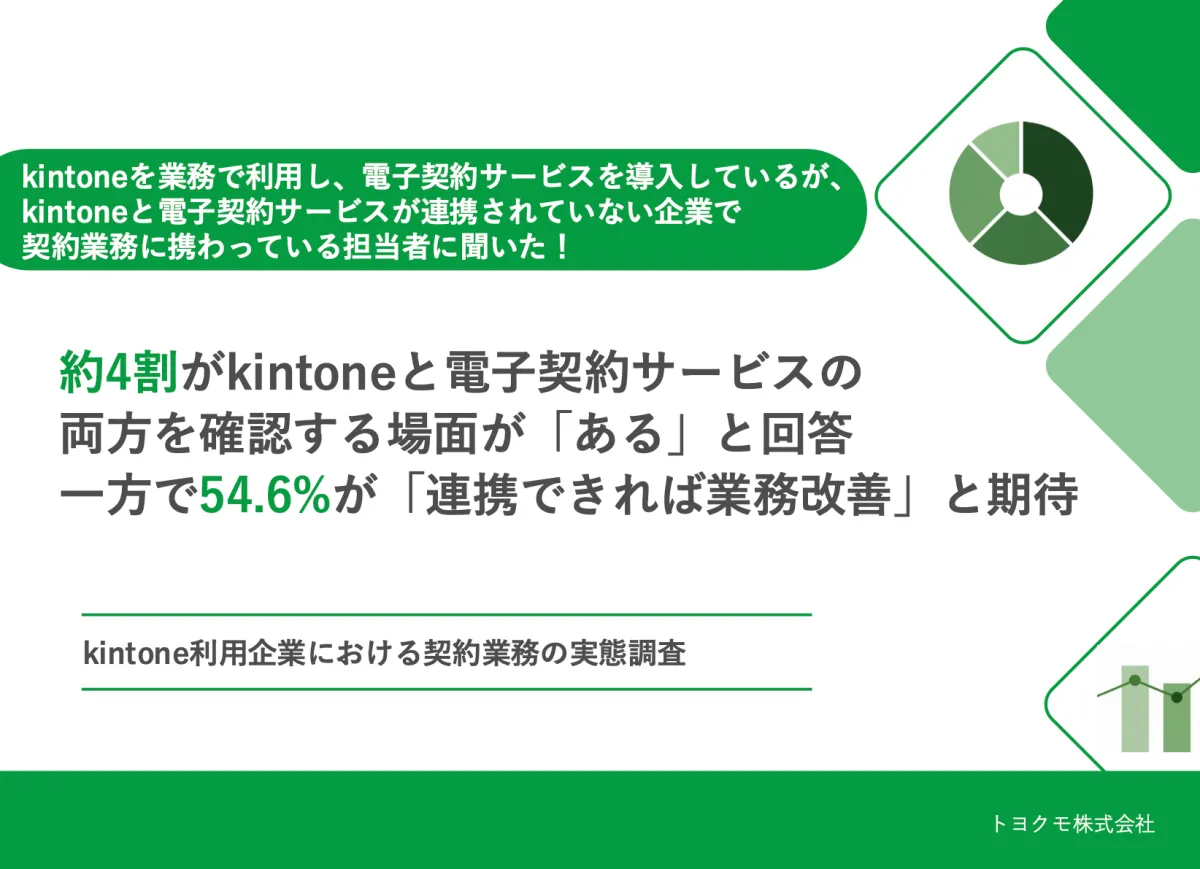 トヨクモの調査は、単なるツール導入からデータの「統合」フェーズへの進化が必要であることを示唆しています。特に契約業務などクリティカルなエリアでは、システムの統合が生産性向上に直結します。これによって、kintoneはただのデータベース以上の存在となり、企業業務全体を加速させる「ビジネスOS」へと進化するのです。