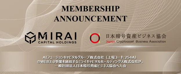AIフュージョンキャピタルグループ株式会社(本社:東京都港区六本木)のWEB3.0事業を統括しているミライキャピタルホールディングス株式会社(以下、MCH)は、一般社団法人日本暗号資産ビジネス協会(JCBA)への入会を決定しました。この動きは、暗号資産市場の環境整備を図るための重要なステップとなります。