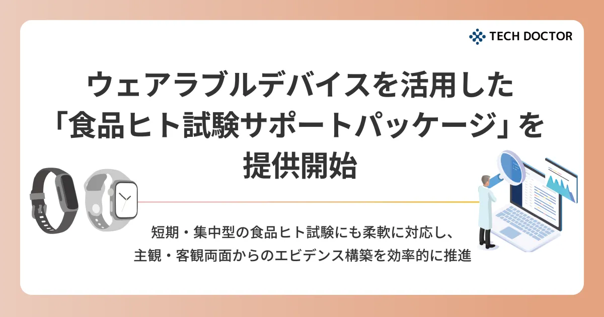 株式会社テックドクターは、食品企業向けに新たに「食品ヒト試験サポートパッケージ」を発表しました。このサービスでは、主観的なアンケート評価では捉えきれない客観的データをウェアラブルデバイスから取得し、食品ヒト試験を支援します。