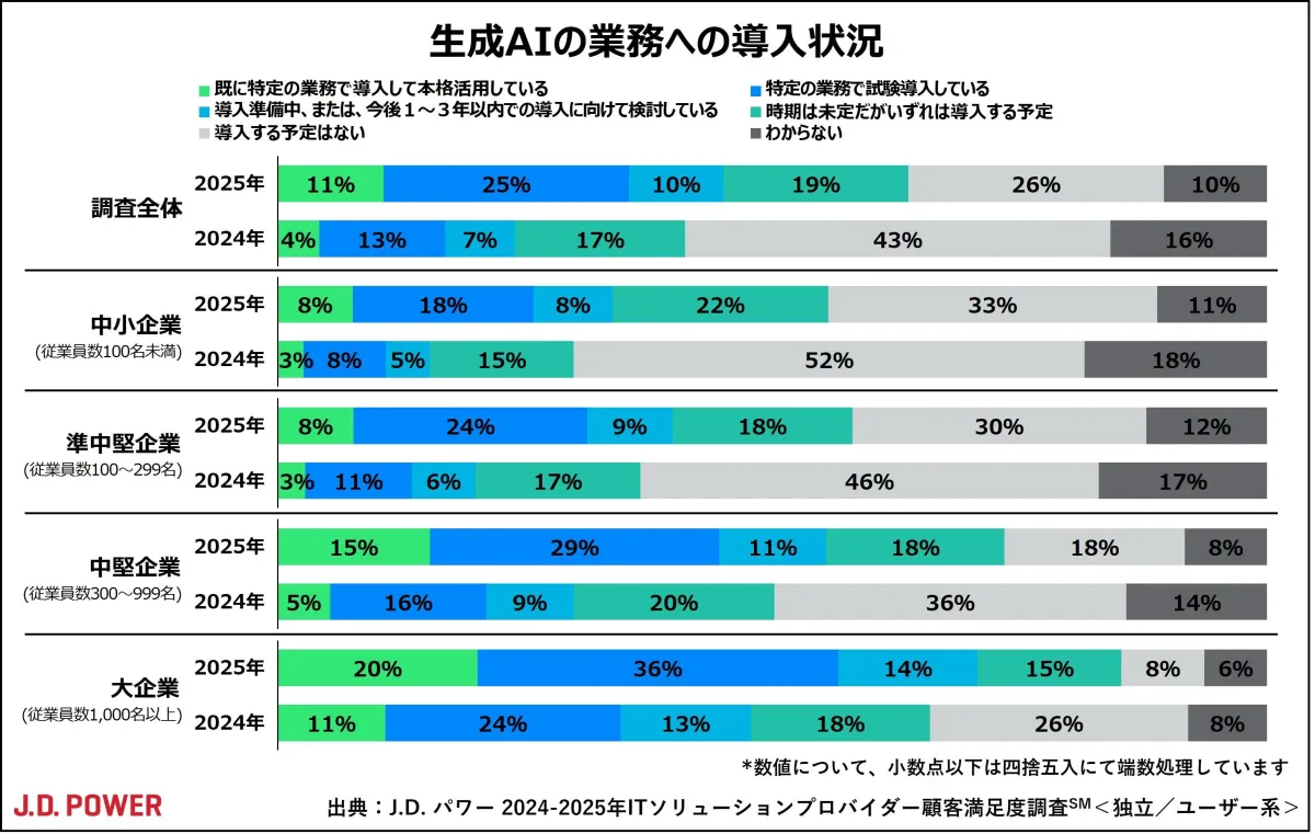 生成AIに対する期待が高まる中、この技術の導入は単に効率化にとどまらず、顧客との信頼関係を深める重要な要素であることが明らかになっています。今後も企業は新たなテクノロジーを適切に活用し、顧客とより良い関係を築くための努力を続けていくことでしょう。J.D. パワーの調査は、顧客満足度を測る貴重な指標として、企業のサービス向上に寄与し続けることが期待されます。
