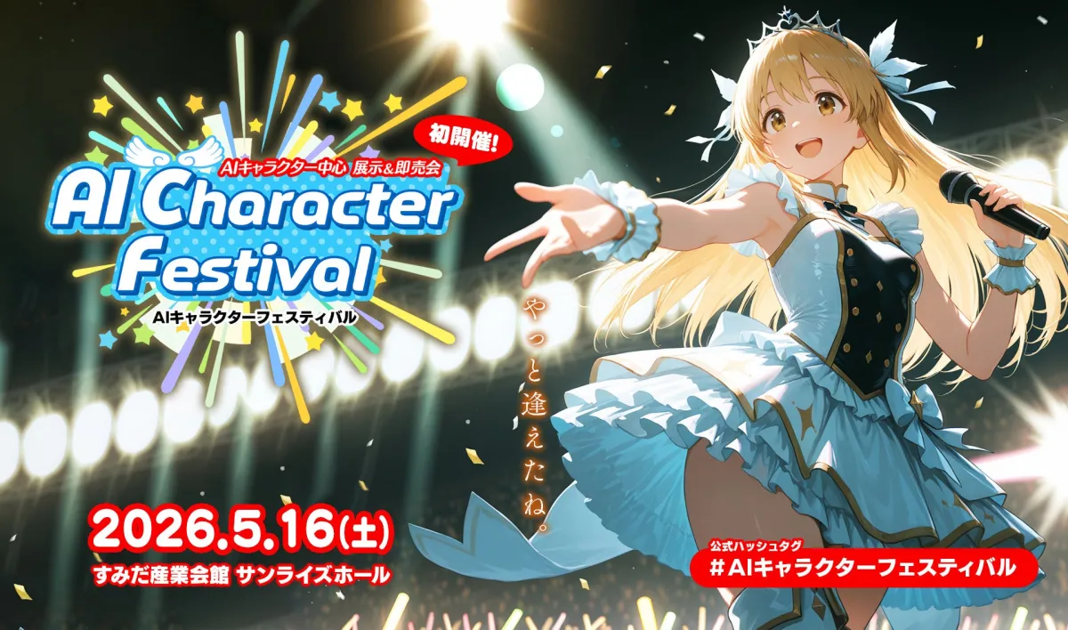 2026年5月16日(土曜日)、すみだ産業会館にて「AIキャラクターフェスティバル」が初めて開催されることが発表されました。本イベントは、生成AIクリエイターたちによる展示および即売会です。出展者の一次募集も開始しており、特にクリエイターやファンにとって注目のイベントとなるでしょう。