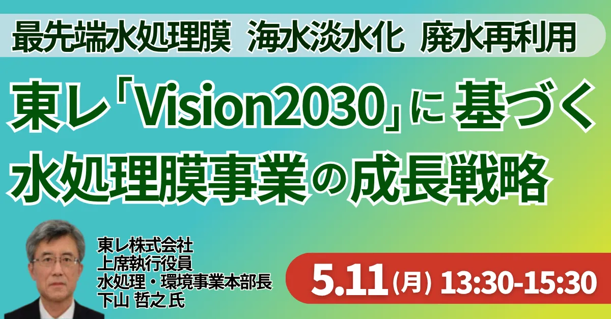 今後の水リソース管理が注目される中、日本計画研究所主催のセミナーが開催されます。このセミナーでは、東レ株式会社の下山哲之氏が講師として参加し、同社が掲げる「Vision2030」に基づく水処理膜事業の成長戦略と、そこにおける新たなビジネス機会について詳しく解説します。