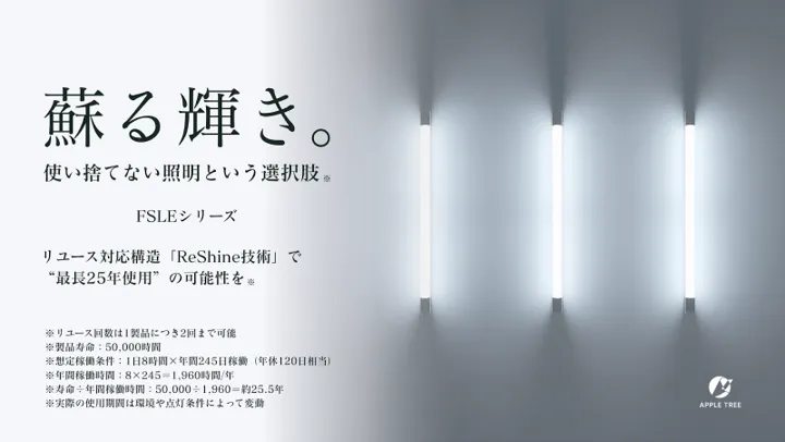 株式会社アップルツリーは2025年12月1日に、新モデルの直管LED照明『FSLEシリーズ』の販売を開始します。この革新的なLED照明は、リユース可能なデザインと高効率200 lm/Wを実現し、環境にやさしい選択肢として注目されています。