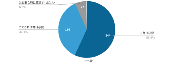 調査によると、回答者の93.3%が「毎日、又はできれば毎日ニュースを見たい」と回答しました。この結果は、若者の情報欲求が非常に高いことを示しています。また、56.9%は「毎日必要」とし、36.4%が「できれば毎日必要」と挙げ、合わせて9割以上の人々がニュースを日常的に確認することの重要性を認識していることが分かります。