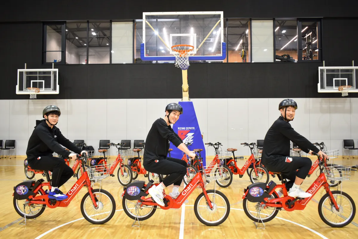 ライジングゼファーとのコラボチャリチャリは、福岡のシェアサイクル体験を一新し、新しい移動の形を提供します。ぜひ会場でこのコラボ自転車に乗って、ライジングゼファーの選手たちを応援してください!