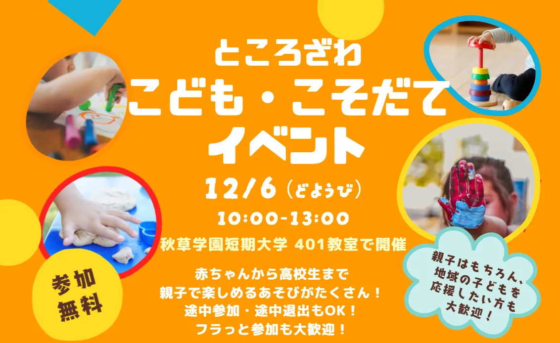 株式会社ネクストビートが主催する「こども・こそだてイベント」が、2025年12月6日(土)に所沢市で開催されます。本イベントは、地域に根ざした子育て支援を目的としたもので、未来の保育者を育成する秋草学園短期大学の学生たちが中心となって企画・運営します。