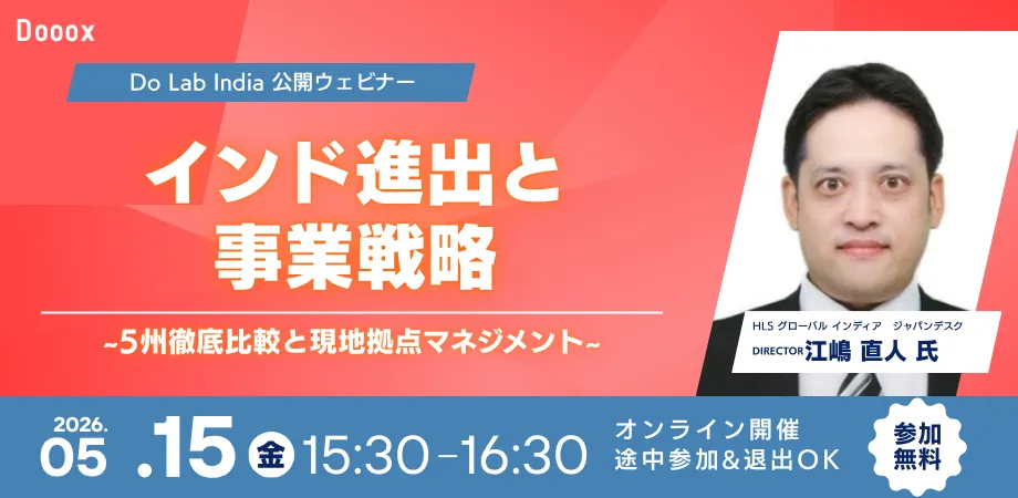 2026年5月15日(金)、株式会社Doooxが主催するオンラインウェビナー「インド進出と事業戦略」が開催されます。このウェビナーでは、インドビジネスに必要な知識を深められる貴重な機会となるでしょう。