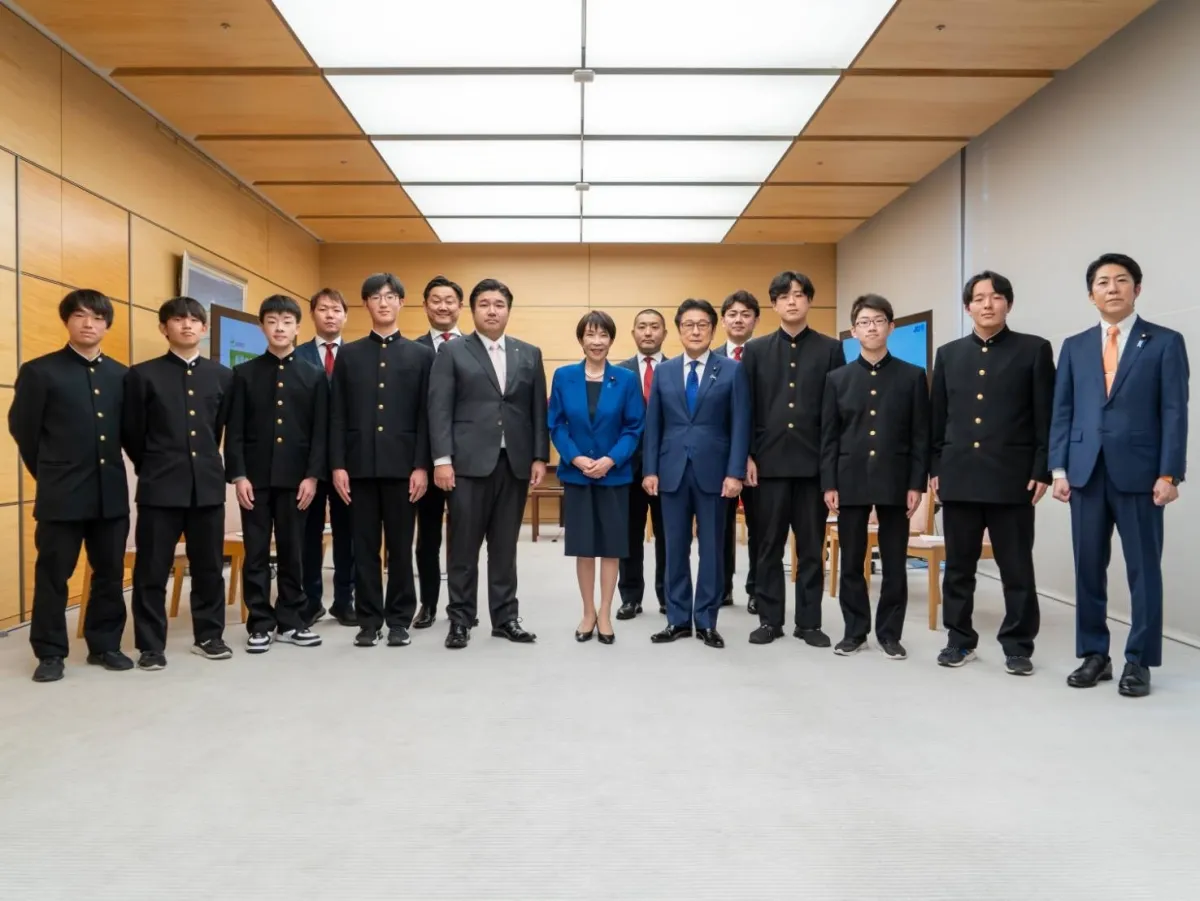 2025年12月25日、岐阜県の岐阜高等学校と大阪府の鳳高等学校の生徒たちは、内閣総理大臣高市早苗氏に表敬訪問しました。本訪問は、第三回全国高校生政策甲子園において最優秀チームに選ばれたことを受けての特別な機会です。彼らは、若い世代の意見や提案を直接政府に届けることができる貴重な場を得ました。