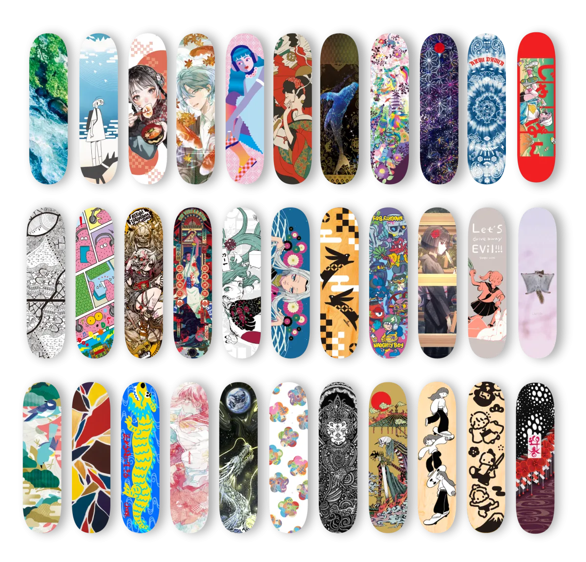 日本の伝統文様は、数百年にわたり美の象徴として構築されてきました。それを現代アーティストたちがどのように解釈し、再創造しているかを、展示イベントを通じて体感できます。スケートボードデッキは、ただの乗り物ではなく、様々なアート作品として存在する位置づけを持ちます。