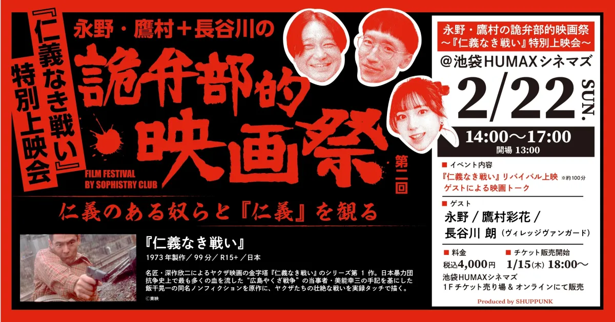 2026年2月22日、池袋HUMAXシネマズにて「永野・鷹村+長谷川の第二回詭弁部的映画祭」が開催されます。このイベントは、人気YouTubeチャンネル「出版区」から生まれたリアルイベントで、特に映画ファンにとって見逃せない機会です。