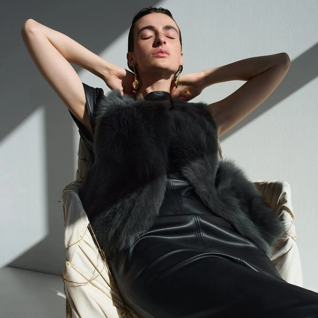 KARL DONOGHUEの特徴は、200年以上の歴史を有するスペインの老舗タンナーによる厳選されたシープスキンを使用している点です。シーズンごとに新しい加工技術を導入し、軽量で柔らかな着心地を追求しています。さらに、環境に配慮し、食用・乳製品産業の副産物から生まれる革を採用し、廃棄物の削減にも取り組んでいます。残布やファーについても再利用の可能性を探求し、持続可能なものづくりを実践。