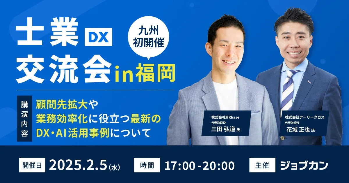 2025年2月5日、福岡で「ジョブカン士業DX交流会」が開催されることが決まりました。これは、株式会社DONUTSが提供するバックオフィス支援クラウドERPシステム「ジョブカン」によるもので、九州地域でのオフラインイベントは初の試みとなります。