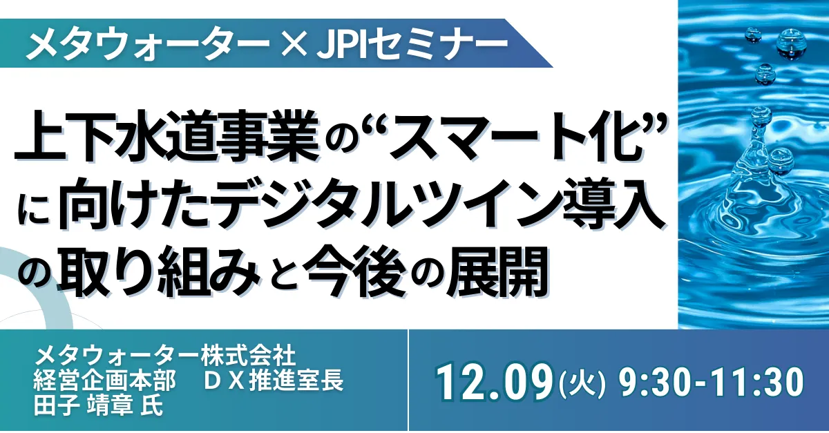 2025年12月9日(火)に開催されるセミナーは、メタウォーター株式会社の田子靖章氏を講師に迎え、上下水道事業の「スマート化」に向けたデジタルツインの導入について詳しく説明します。本セミナーでは、特に国や自治体が直面している課題と、その解決策について深掘りしていきます。