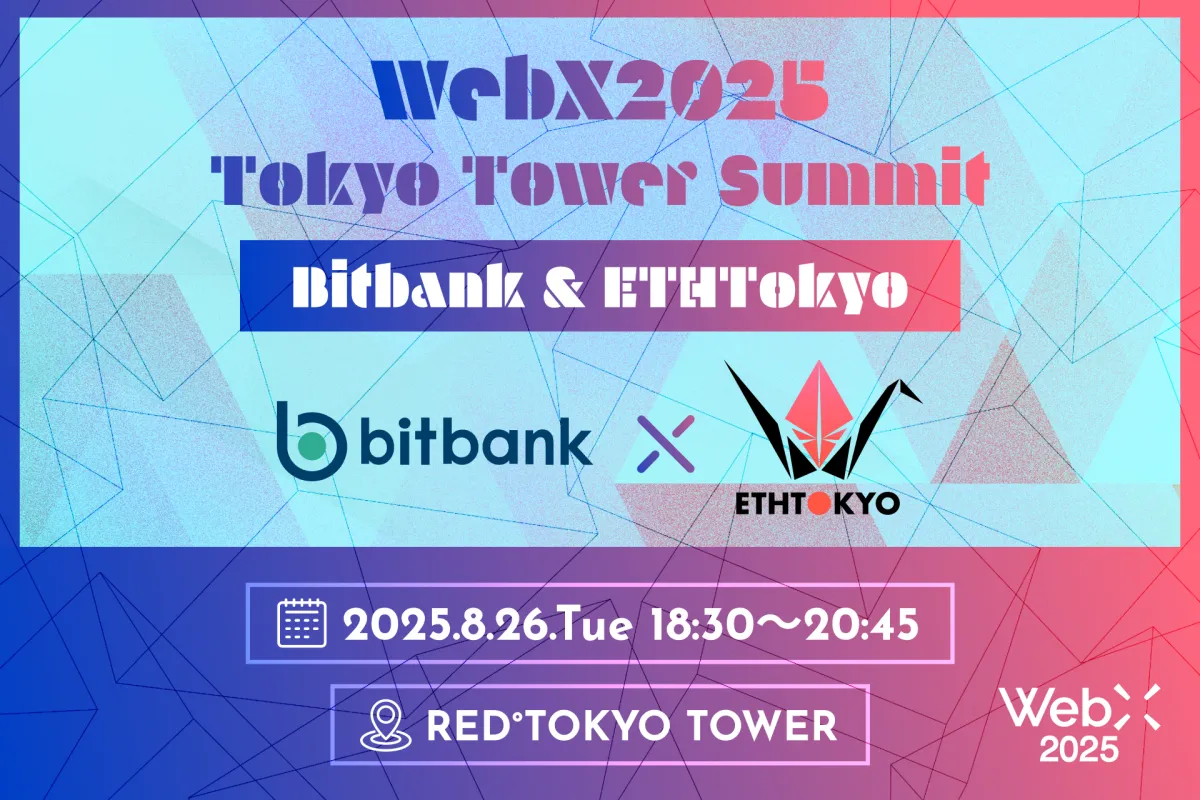 ビットバンク株式会社が主催する『WebX2025 Tokyo Tower Summit - Bitbank & ETHTokyo』が、2025年8月26日に日本の象徴である東京タワー内の「RED° TOKYO TOWER」で開催されることが決まりました。このイベントは、多くのWeb3関連企業やエンジニアが集う、アジア最大規模のカンファレンス『WebX』に合わせた特別なサイドイベントです。