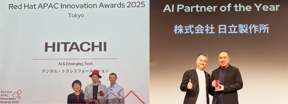このアワードは、アジア太平洋地域における技術の革新を称えるもので、AIや新興技術、クラウドインフラストラクチャ、クラウドネイティブ開発、自動化といった各分野での卓越した業績が評価されます。特に日立は、AI & Emerging Techおよびデジタル・トランスフォーメーション部門において、その革新的な成果が注目されました。日立はまた、日本法人のレッドハット株式会社が主催する「Red Hat Japan Partner Awards 2025」でも、AI Partner of the Yearを二年連続で受賞しました。