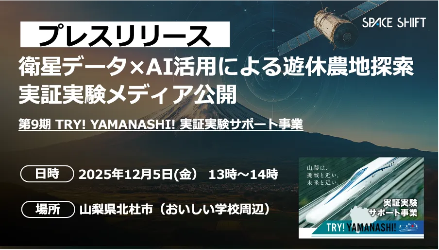 株式会社スペースシフトが、山梨県から採択された実証実験において、衛星データとAI解析を活用した遊休農地判定を実施します。これは、特に北杜市の農業委員会の協力を得て行われるもので、果樹園や中山間地帯を中心に、農地の荒廃状況を高精度で自動検出することを目指します。