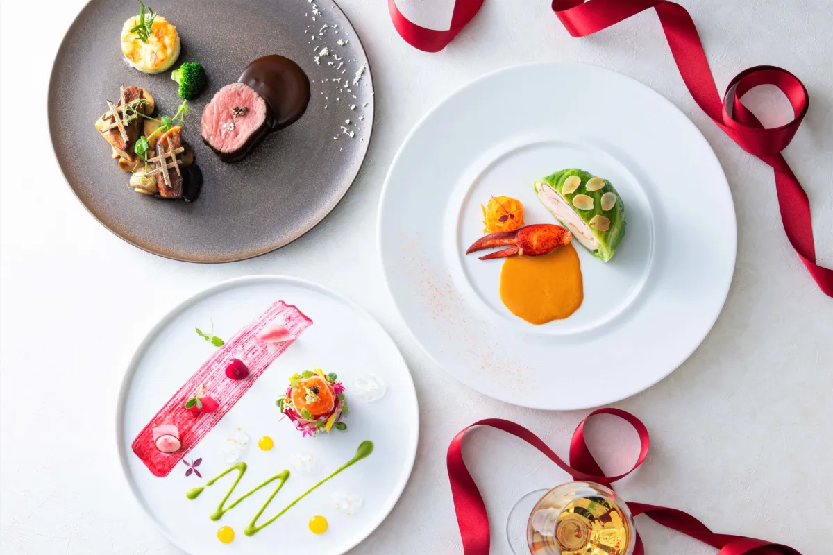 この期間中に特別に提供されるクリスマス限定コース料理は、フレンチにモダンなアレンジが加えられた特別なメニューです。マリネサーモンや海の幸が可憐に彩られ、メインディッシュには国産牛フィレ肉のローストが用意されます。この特別なコースが心ときめく聖夜を彩ります。ランチコースは10,120円、ディナーコースは17,077円からとなります。