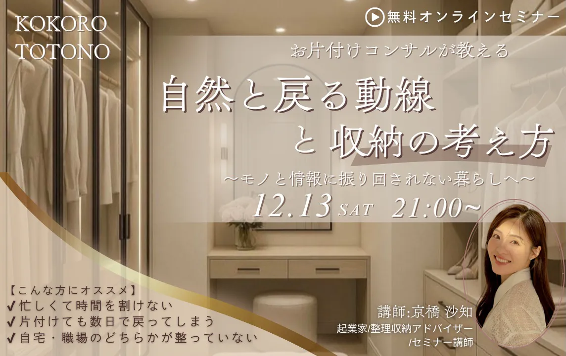 忙しい日常に埋もれてしまいがちな大人たちに朗報です。東京・港区のKOKORO TOTONOが、整った暮らしを実現するための新しいライフデザイン講座「KOKORO TOTONO 伴走型プログラム」を12月13日から提供します。この講座は、〝3ヶ月で整う仕組み〟をテーマに、片づけや時間管理、心の余裕をもたらす方法を学べる貴重な機会です。