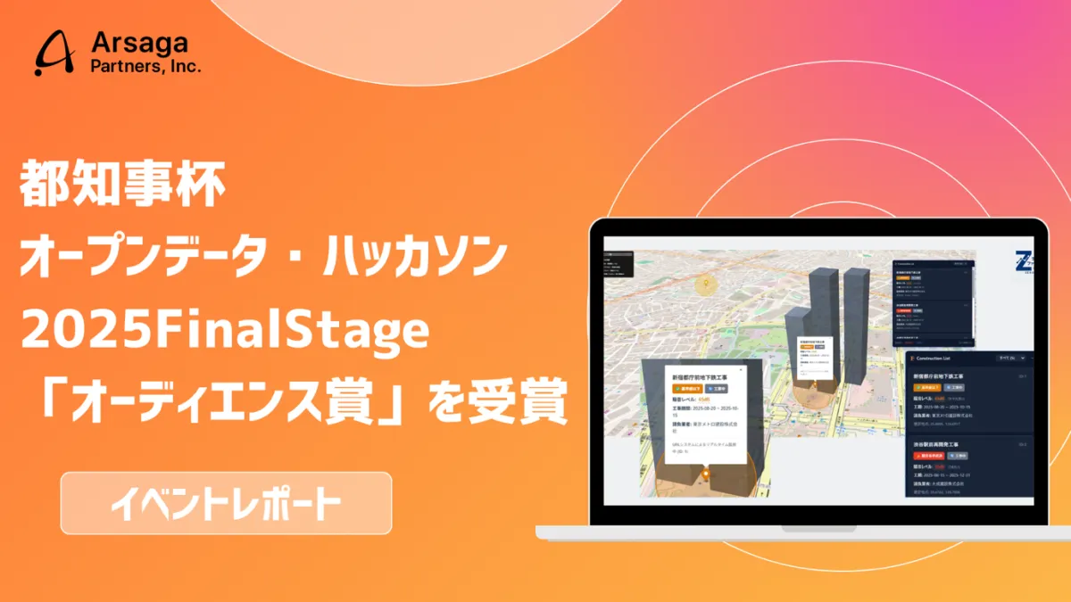 2025年10月26日、東京都の「都知事杯オープンデータ・ハッカソン2025」FinalStageにおいて、アルサーガパートナーズの有志チーム「データファーストの会Z」が「オーディエンス賞」を受賞しました。この成果を生むきっかけとなったのは、都市における騒音問題を解決するための新しいサービス提案、
