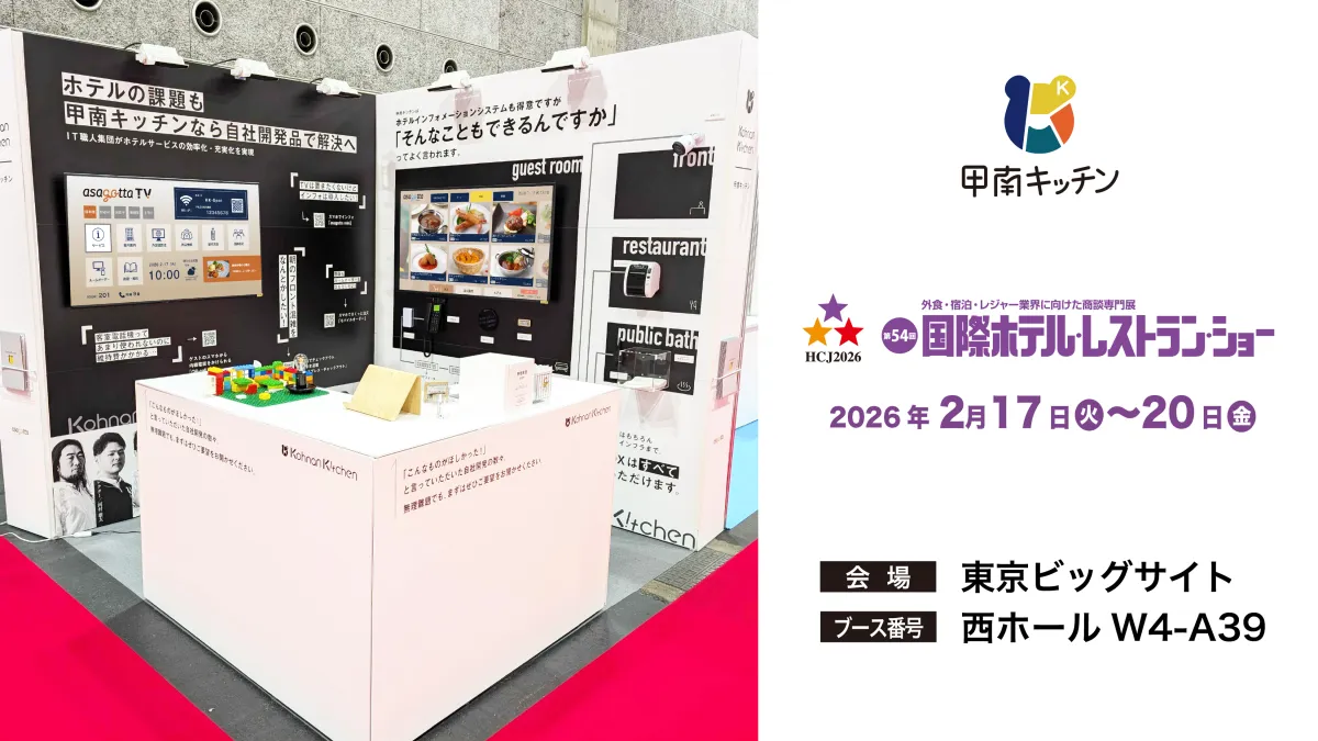 2026年2月17日から20日まで、東京ビッグサイトで開催される「第54回国際ホテル・レストラン・ショー(HCJ2026)」に、兵庫県神戸市の合同会社甲南キッチンが出展します。ブース番号は西4ホール W4-A39で、ホテル業界に特化した最新のITソリューションを体験できる貴重な機会です。