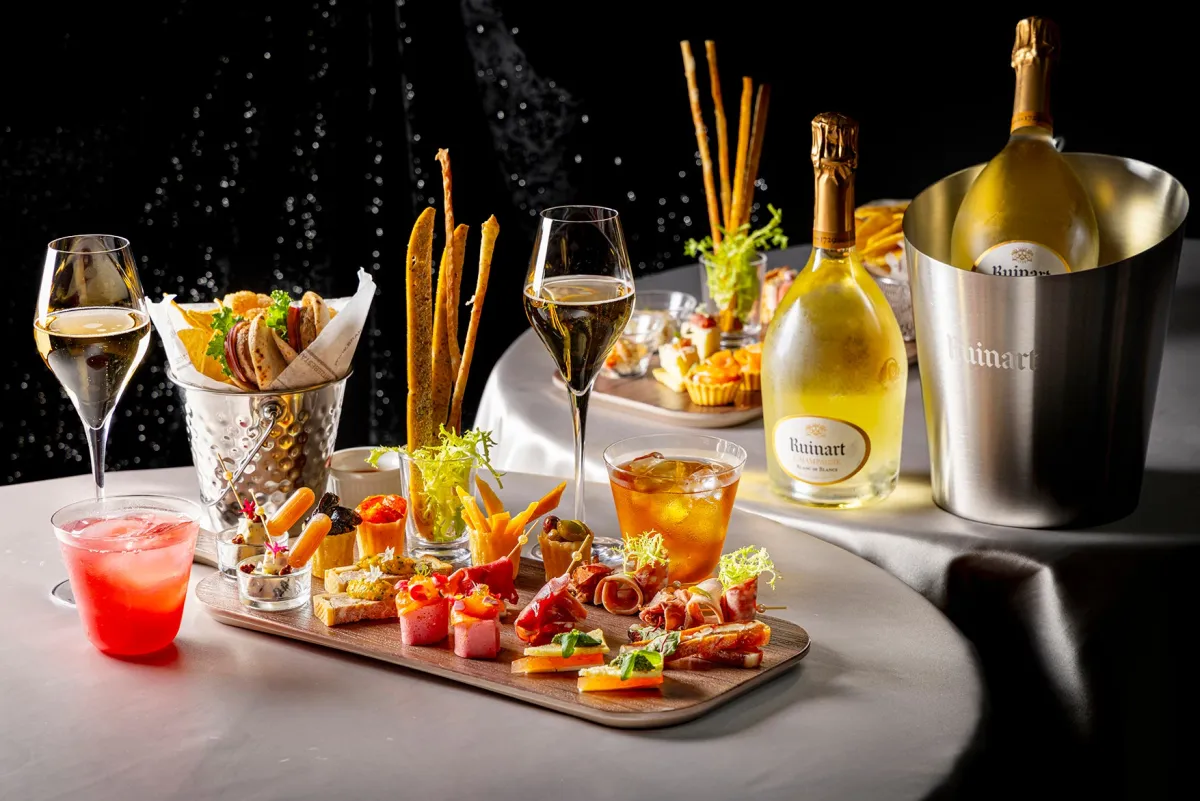 「トゥエンティエイト」では、レインボーブリッジや東京湾の美しい夜景を見渡せる贅沢な空間で、特別にセレクトされたシャンパーニュ「ルイナール」とともにカウントダウンを楽しむことができます。\