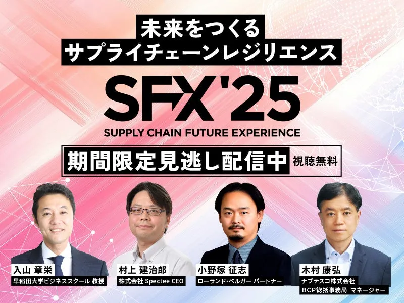株式会社Specteeが主催するオンラインカンファレンス「SFX'25 - SUPPLY CHAIN FUTURE EXPERIENCE(SFX 2025)」が、2025年12月1日から期間限定で再放送されることが決定しました。このカンファレンスは、2025年3月14日に開催され、提起されたテーマは「未来をつくるサプライチェーン・レジリエンス」です。多くの参加者が集まり、さまざまな視点から議論が交わされましたが、再放送は多くの方からのリクエストを受けて実施されることとなりました。