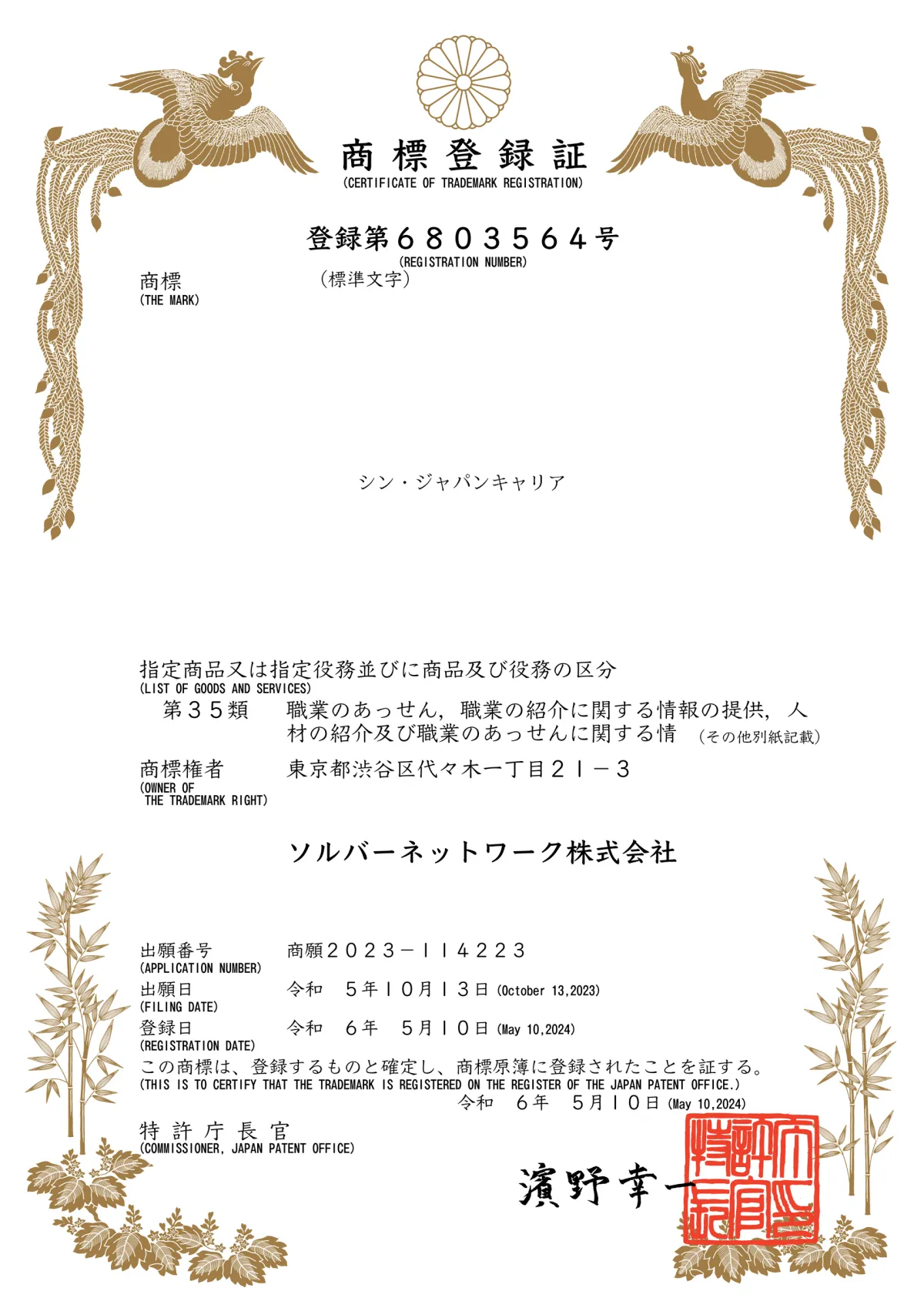 ソルバーネットワークが"シン・ジャパンキャリア®"を商標登録