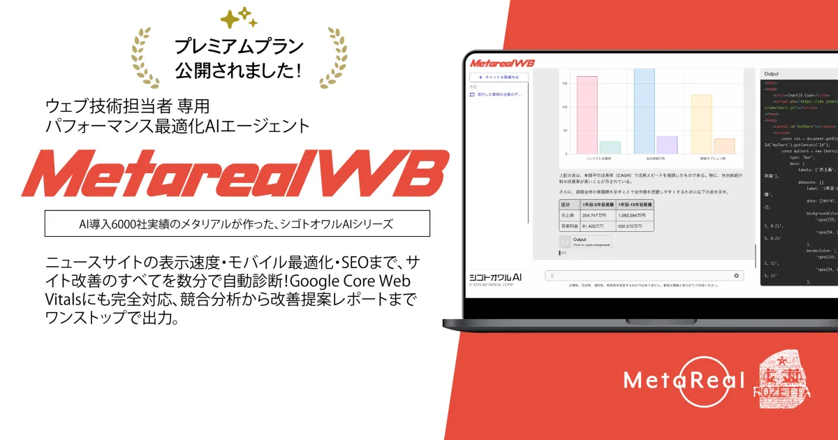 株式会社ロゼッタが手掛ける「Metareal ウェブ」が新たにプレミアムプランを発表しました。このプランでは、月額5万円で1日20回、さらに月200回までのパフォーマンス分析が可能になります。この革新的なサービスは、主にニュースやメディアサイトに向けたもので、サイトの表示速度やレスポンスタイム、モバイル最適化、サーバーレスポンス、SEOメタ情報などを総合的に診断し、数分で改善レポートを出力することができます。これにより、技術部門の負担を大きく軽減し、効率的なサイト改善が期待されています。