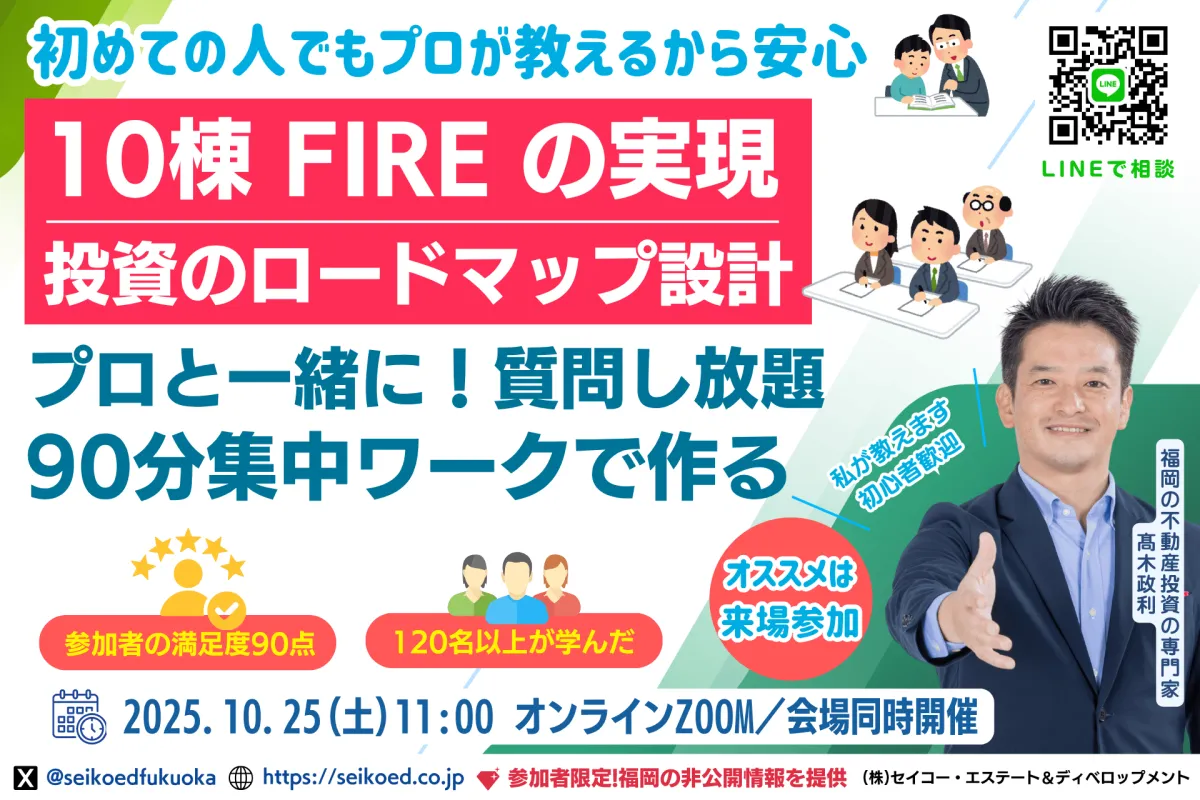 2025年10月25日、福岡市中央区にて、会社員を対象とした無料の不動産投資セミナーが開催されます。このセミナーでは、金利上昇や老後の不安を解消するための資産形成の方法を学ぶことができます。
