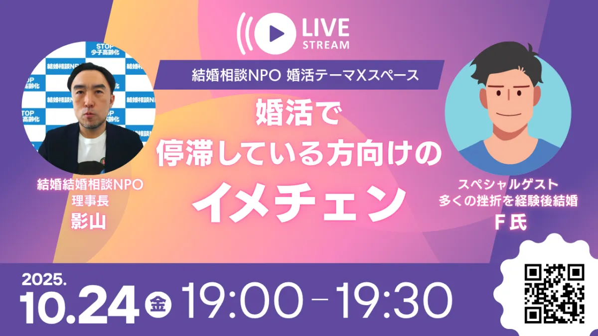 東京都に拠点を持つ結婚相談NPOが、新たにXスペースという枠組みで婚活イベントを開始します。2025年10月24日19時から始まるこの特別企画の第一回のテーマは「婚活で停滞している方向けのイメチェン」。ホストにはNPOの代表である影山氏が登場し、この場で婚活経験者のF氏との対談が行われます。F氏は、これまでの婚活での苦労や挫折を乗り越え、実感したイメチェンの効果について語ります。