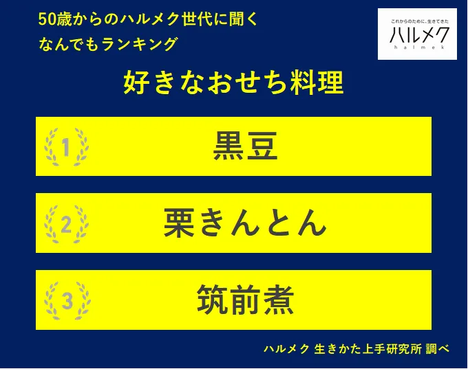 日本のお正月を彩るおせち料理。特に、50歳以上の女性が選ぶ「好きなおせち料理」のトップ3が発表されました。このランキングは、「ハルメク 生きかた上手研究所」実施の調査に基づいています。どのような料理が選ばれ、なぜそれらが好まれているのでしょうか。