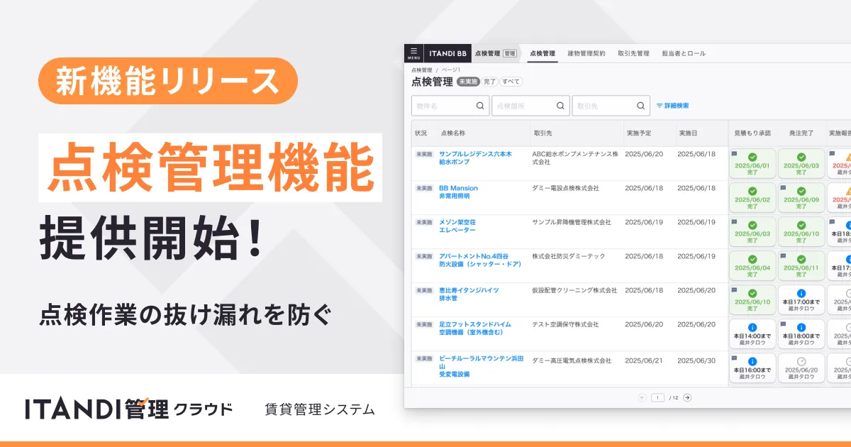 不動産業界を支えるイタンジ株式会社が、2025年7月8日よりその賃貸管理システム「ITANDI管理クラウド」に新しい「点検管理機能」を導入し、すべての顧客に向けて提供を開始します。この新機能は、管理会社が抱える建物点検業務の複雑さを解消し、作業の抜け漏れや遅れを防ぐために設計されています。
