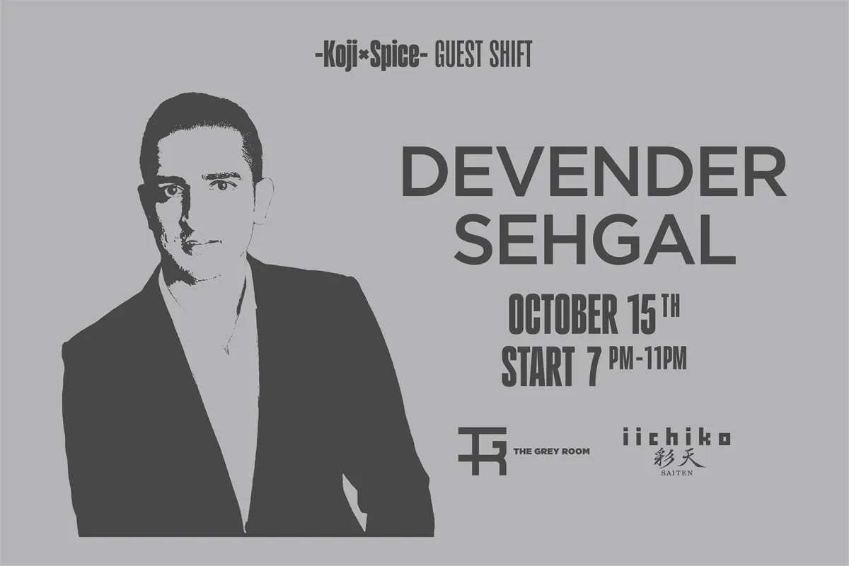 銀座の街に高くそびえる、THE GREY ROOMで特別な一夜が待っています。2025年10月15日水曜日、世界的に認められたバーテンダー、デヴェンダー・セガールがゲストとして登場します。このイベントは、2024年の「バー業界でもっとも影響力ある100人」に選出されたデヴェンダー氏が、伝統的な日本の焼酎を使った独自のカクテルを提供する特別な機会です。
