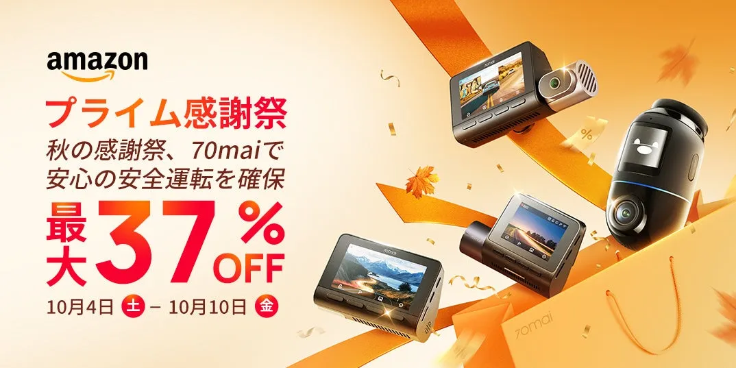 70mai株式会社が、Amazonプライム感謝祭を祝して開催する特別セールが注目を集めています。キャンペーンは10月4日から10月10日までの約1週間限定で、人気のドライブレコーダーが最大37%オフという驚きの価格で提供されます!
