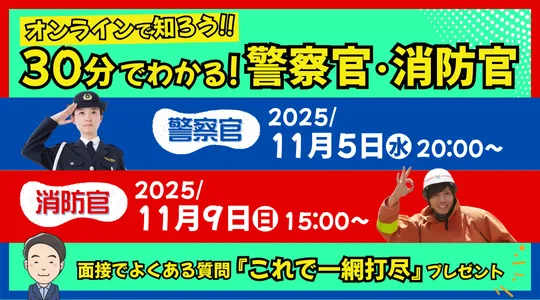 将来、警察官や消防官としての道を考えている方にとって、情報収集は欠かせません。そんな方々に向けて、TACが「30分でわかる!警察官・消防官」をテーマにしたショートガイダンスを開催します。このガイダンスでは、具体的な試験対策や面接のコツなど、短時間で手に入る貴重な情報をお届けします。