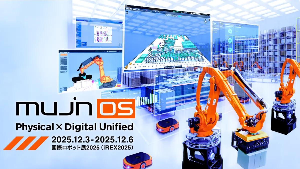 2025年12月3日から6日までの間、東京ビッグサイトで開催される「国際ロボット展(iREX)」に、総合オートメーションテクノロジー企業のMujinが出展します。Mujinは、急成長を遂げている「MujinOS」の技術を駆使し、フィジカルとデジタルがリアルタイムで同期する新しいデジタルツイン工場と倉庫を展示します。