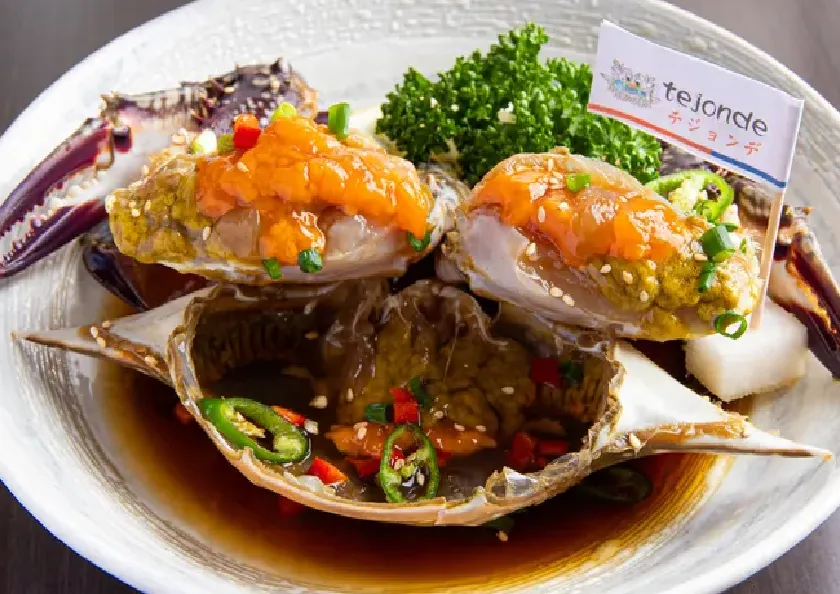 選んだ蟹は、スタッフが目の前で仕上げてくれるため、出来たての味をその場で堪能できます。カンジャンとはニンニクや薬味を利かせた醤油ベースのタレで、テジョンデが25年前からその秘伝のタレを使っているのも大きな特徴。蟹本来の旨味とあわせて、秘伝のタレが風味を引き立てるはずです。