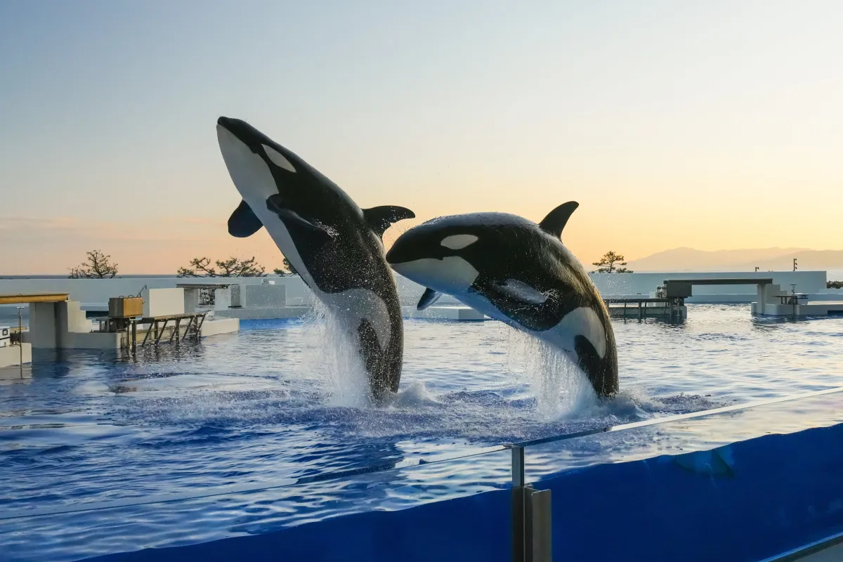 一方で「GW トワイライトチケット」は、同じく期間中の16時以降に入館できる特別チケットです。この時間帯は、夕焼けに染まる美しい須磨海岸を背景に、ド迫力のオルカパフォーマンスやドルフィンパフォーマンスを楽しむチャンスです。日が沈むと共に幻想的な雰囲気に包まれる中で、数々のパフォーマンスが繰り広げられます。