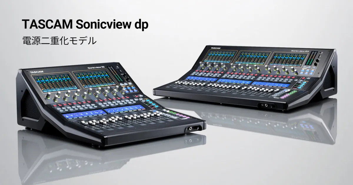 音楽と放送のプロフェッショナルたちに愛されるTASCAMが、自社のデジタルミキサーの最新ラインナップとして、電源二重化モデルの『TASCAM Sonicview 24dp』と『TASCAM Sonicview 16dp』を発表しました。この新しいモデルは、音質の向上や操作性の改善を図り、特に生放送やライブサウンドの現場において、依然として中断が許されない厳しい条件下での運用をサポートします。