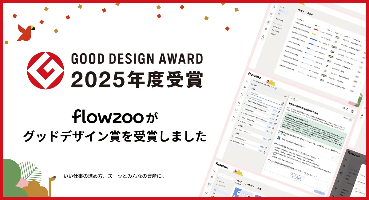 業務の効率化を図る「flowzoo」が、公益財団法人日本デザイン振興会主催の「2025年度 グッドデザイン賞」を受賞しました。なお、この賞は日本国内外で広く認知されているデザイン賞で、製品やサービスのデザインの優れた点に焦点を当てています。