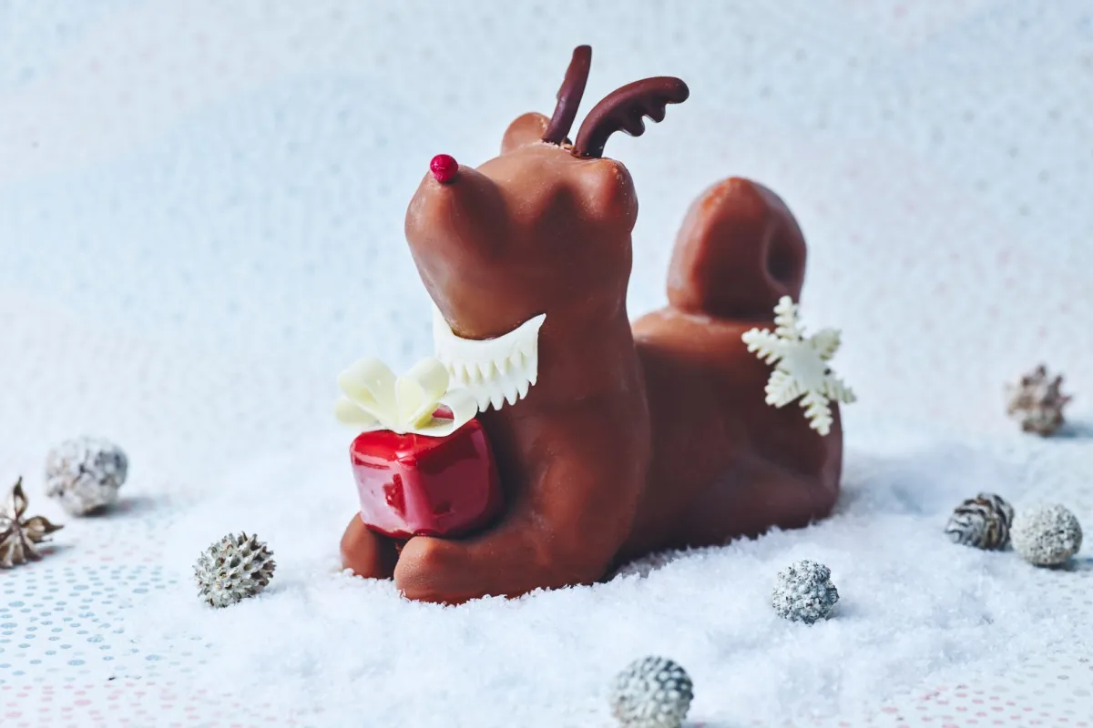 昨年と同様に、今年も「ハチ公ケーキ」が登場。愛らしいトナカイ姿で、テーブルを華やかに演出します。このケーキは、愛犬ハチ公がプレゼントを届けるかのようなストーリー仕立てで作られており、見る人を楽しませてくれるビジュアルが特徴です。