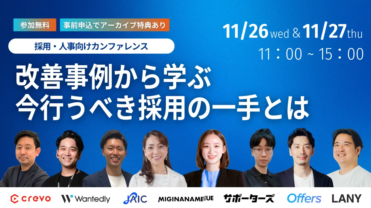 株式会社ミギナナメウエは、11月26日(水)と27日(木)の2日間にわたって「改善事例から学ぶ今行うべき採用の一手とは」というテーマで、採用人事向けのカンファレンスを実施します。現状の採用活動で直面している課題に対し、成功事例を通じて具体的な改善策を学ぶための貴重な機会です。