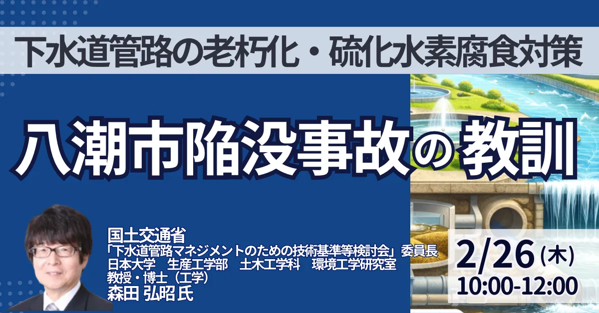 この度、2026年2月26日、JPI(日本計画研究所)が主催するセミナーが開催されます。このセミナーでは、国土交通省「下水道管路マネジメントのための技術基準等検討会」の委員長である森田弘昭氏が講師として招かれ、昨年1月に埼玉県八潮市で発生した陥没事故の教訓について詳しく解説します。