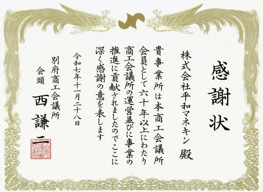 2025年11月28日、株式会社平和マネキンが別府商工会議所から「永年会員60年以上」の感謝状を授与されました。この栄誉は、地域商工業の振興に寄与してきた70年以上の取り組みが評価された結果です。平和マネキンは、全国47拠点を持ち、商業施設やアパレルブランドの空間づくりを手掛けてきました。